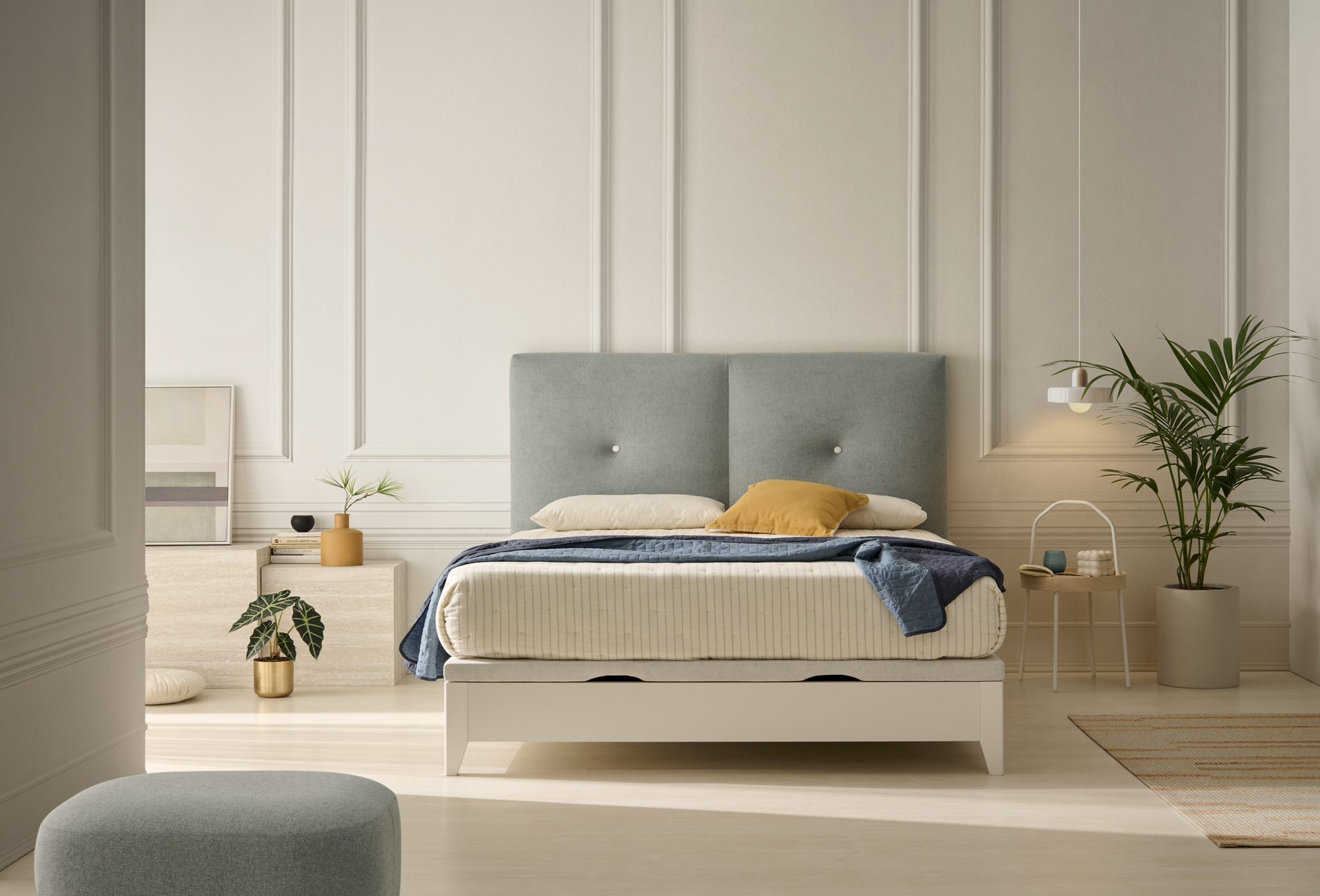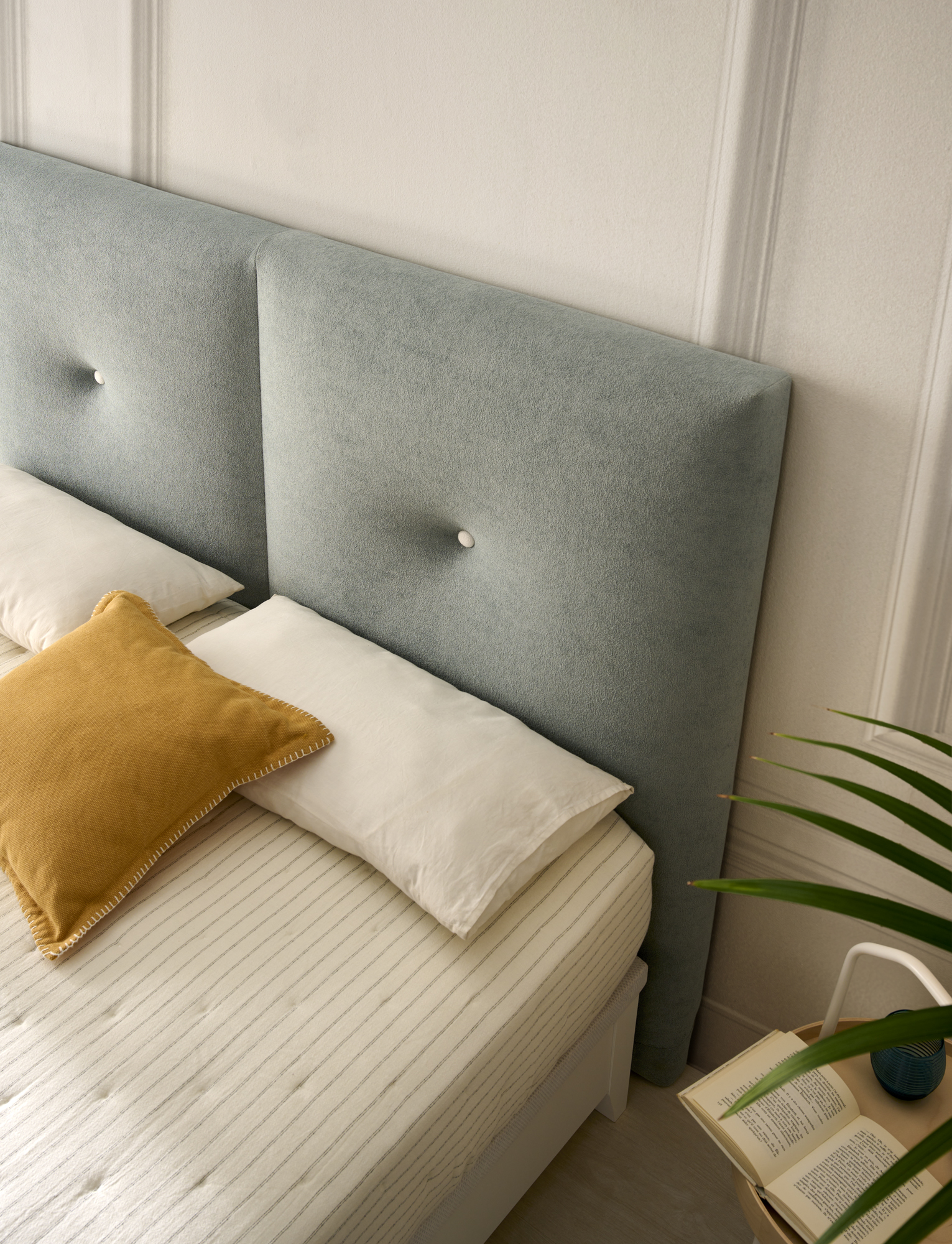 Cabecero tapizado CON BOTONES TAPIZADOS.