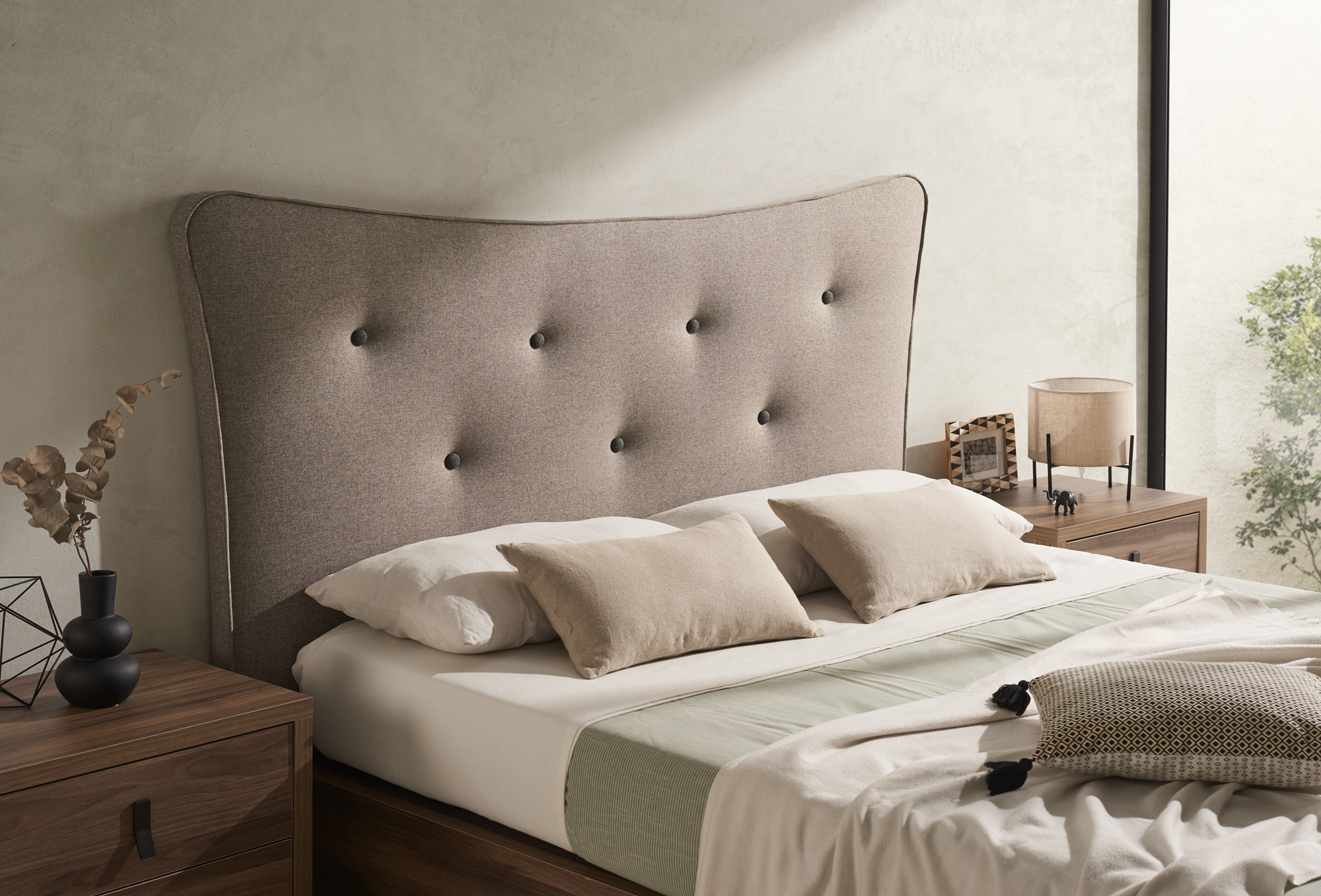Cabecero tapizado CON DETALLE BOTONES TAPIZADOS Y BORDON PERIMETRAL.