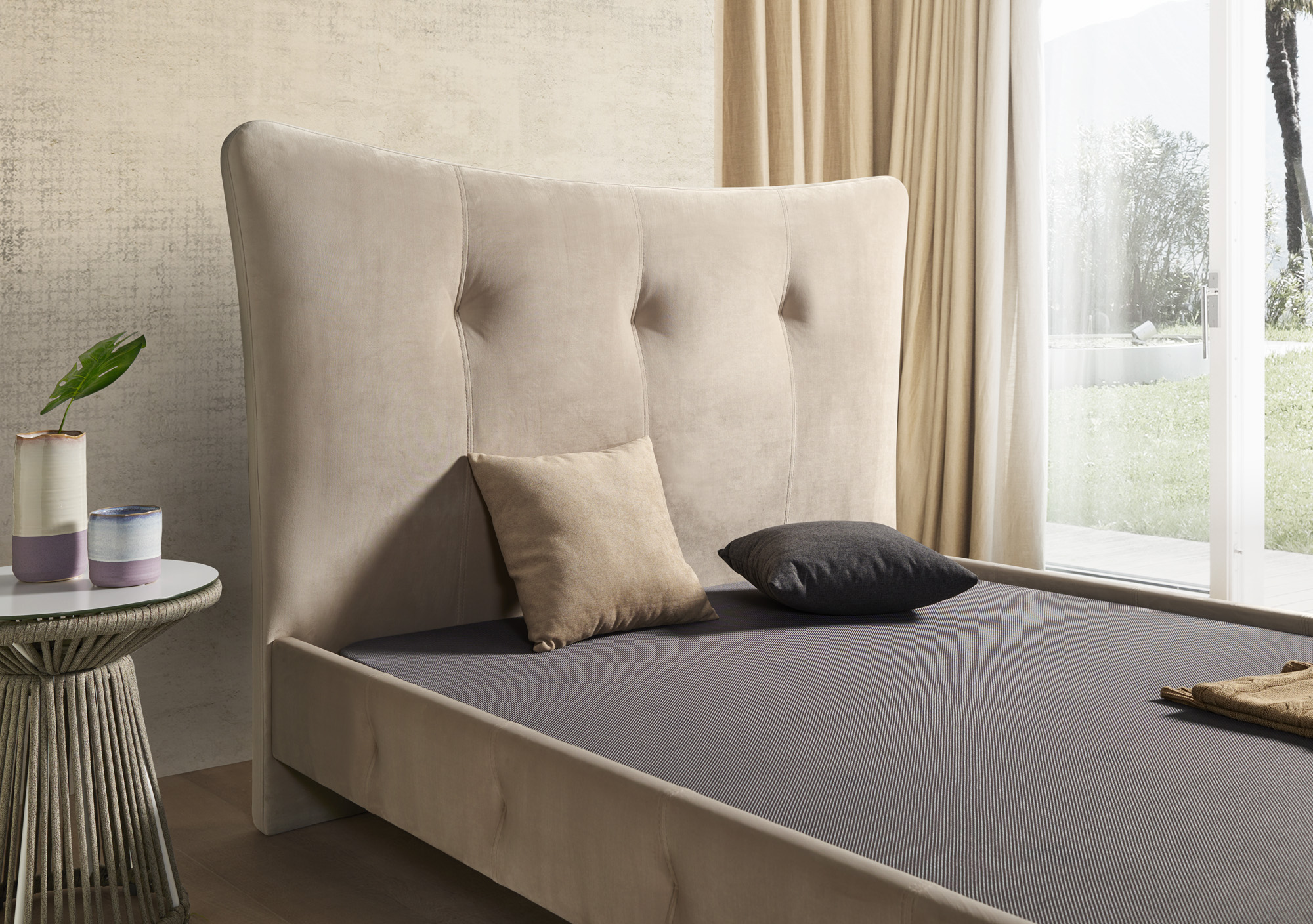 Cabecero tapizado CON DETALLE BOTONES COSTURA Y TIRON VERTICAL.