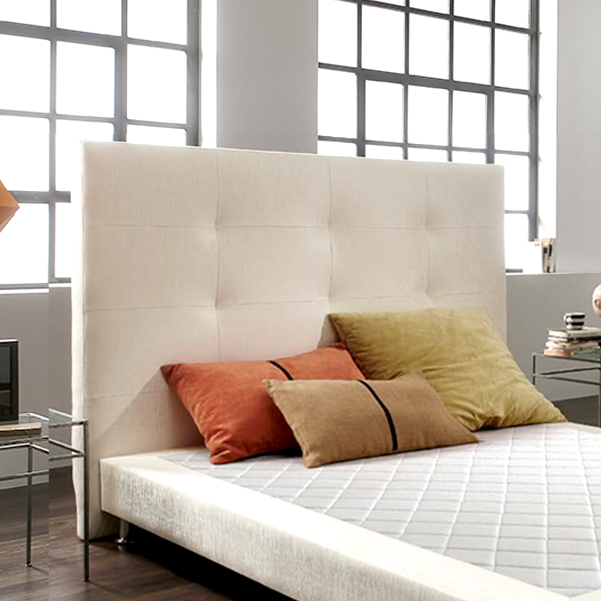 Cabecero tapizado CON DETALLES COSTURA RECTANGULOS Y TIRONES.