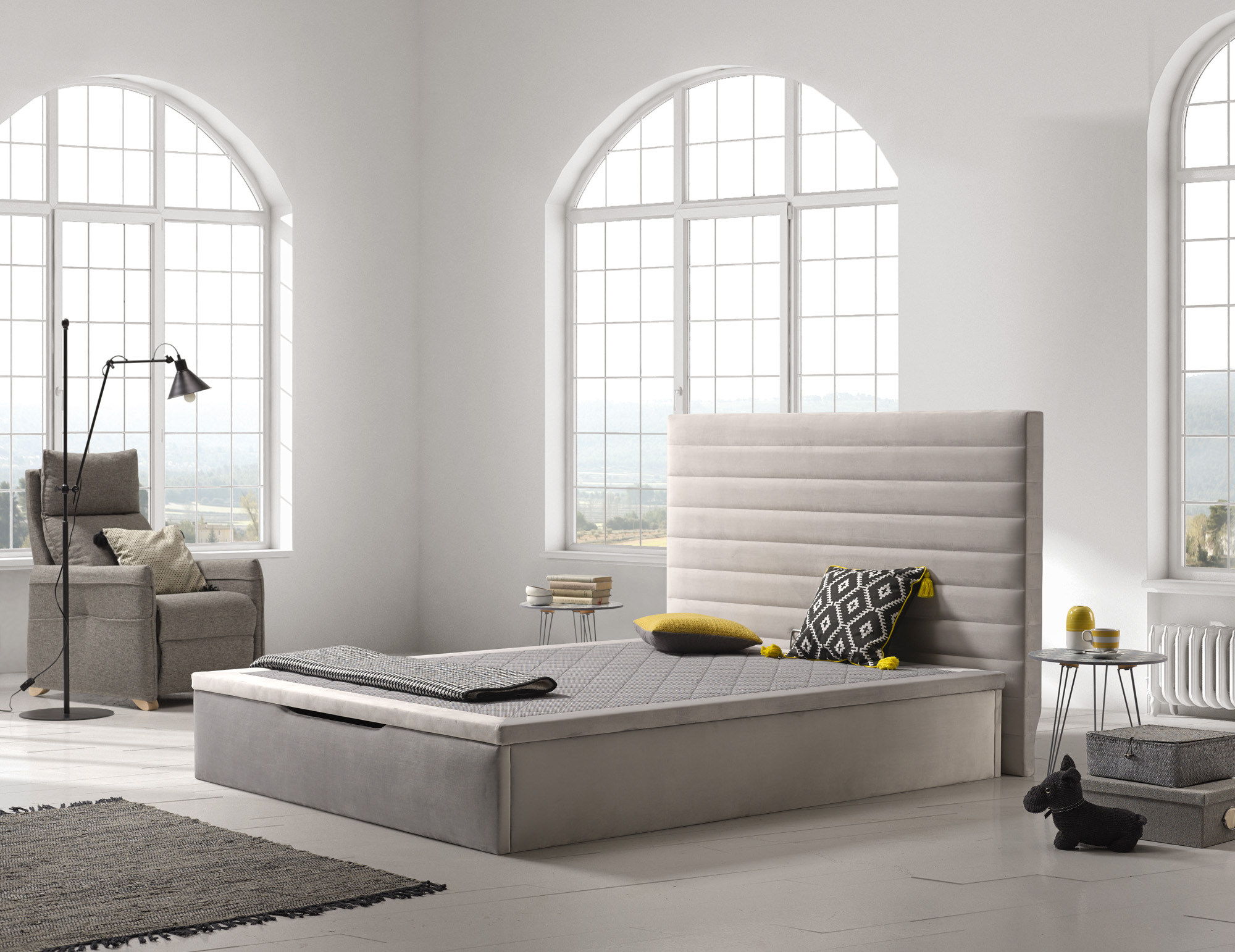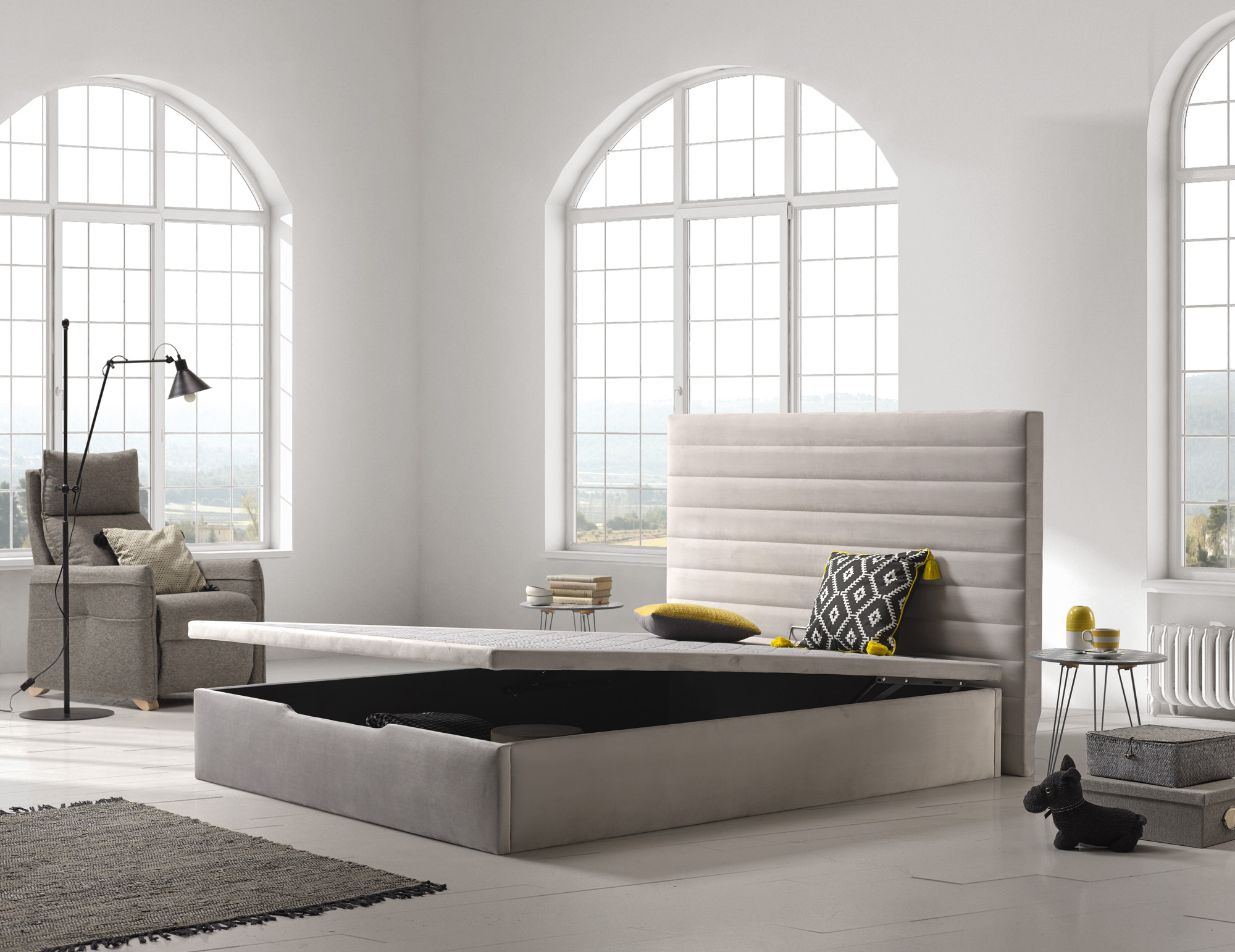 Opciones disponibles : Apertura lateral, tapa partida, tapa TOP, somier tapizado, bisagra doble pistón, patas metálicas, apertura motorizada, guardapolvo, zócalo con ruedas y cubrebisagras.