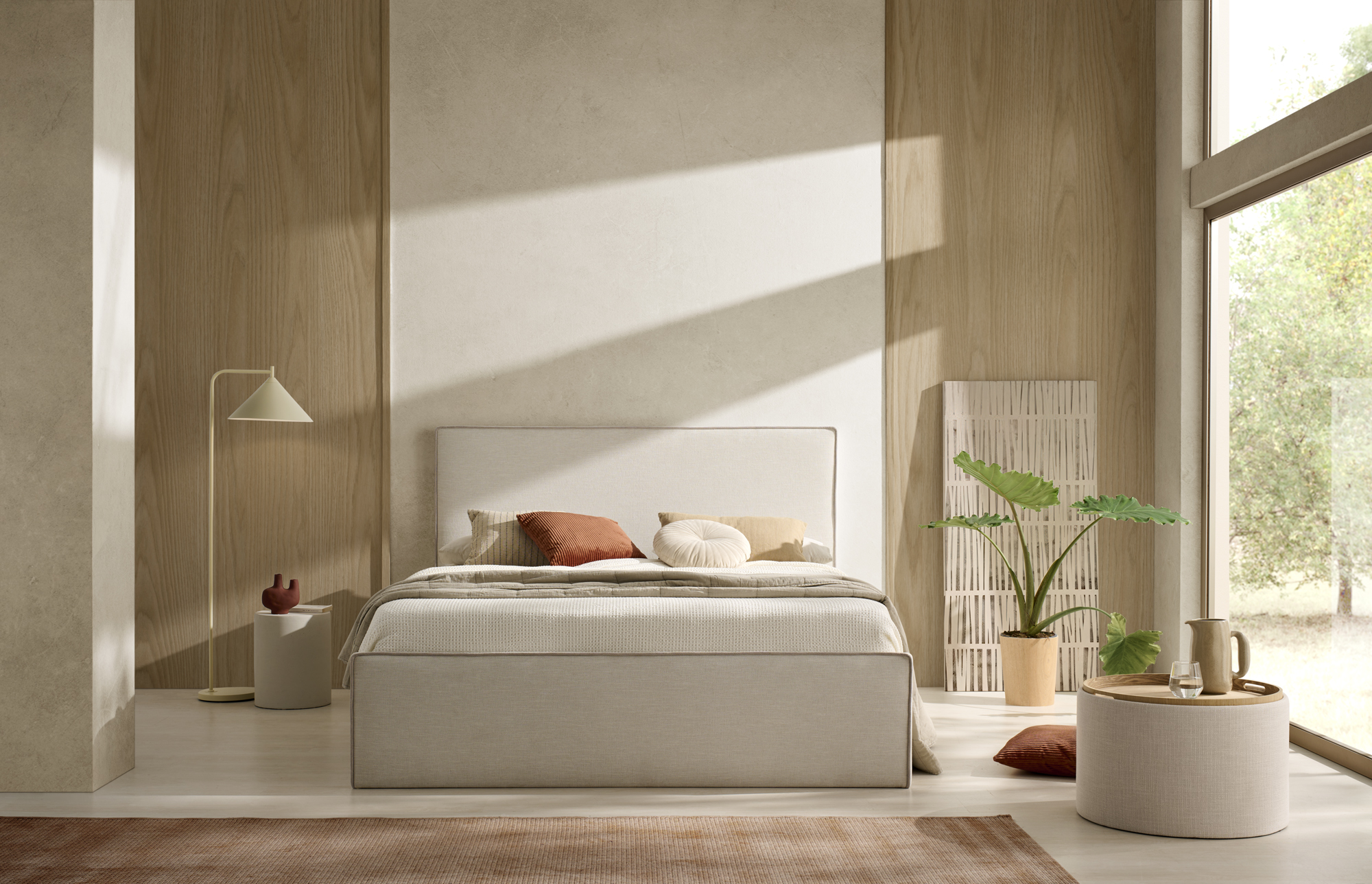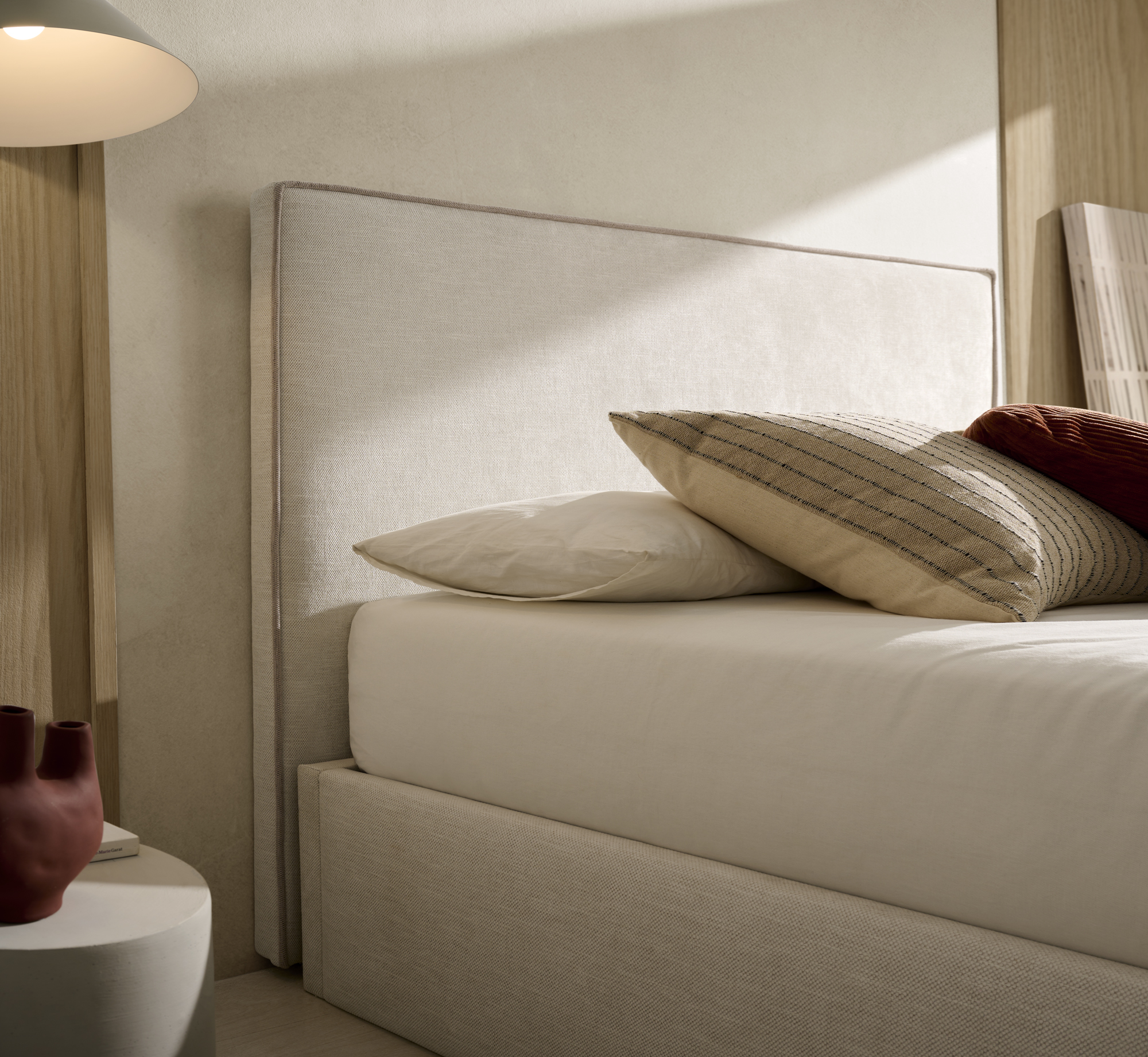 Cabecero tapizado CON DETALLE BORDON PERIMETRAL.